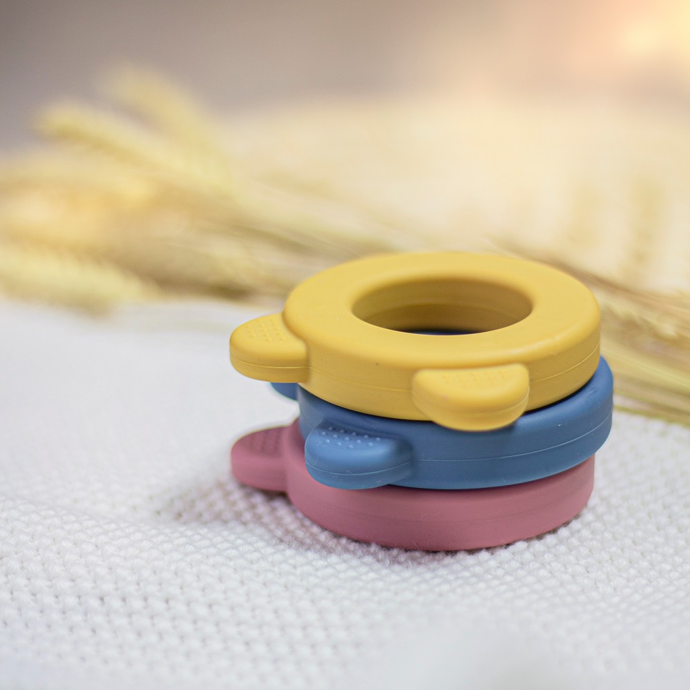PETITE e MARS Silicone teether with rattle Beary Petrol Blue 0m+
